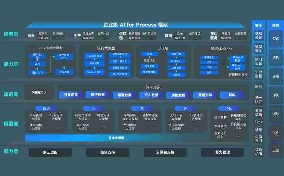 端到端的一站式AI工作空间深度融合了从企业战略规划到日常经营的全流程业务板块,,,,定向解决车企内部领域多、、、、部门多、、、、链条长、、场景碎片化等难题,,,支持车企快速构建以AI为核心的生产力写作体系,,,实现任务执行与AI能力的无缝集成与交互